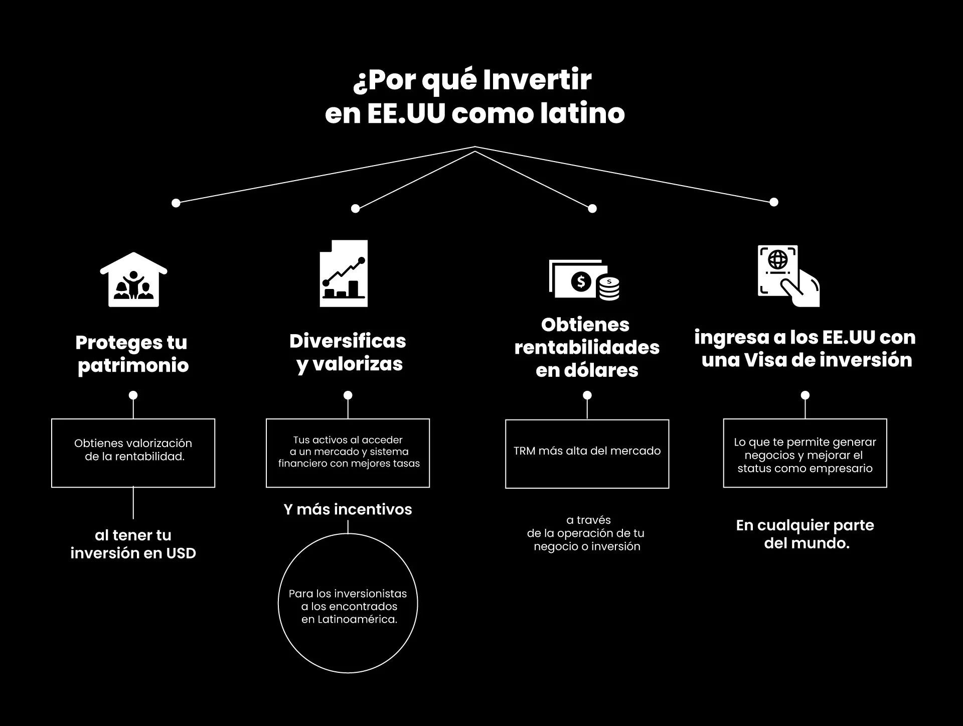 Obtienes la posibilidad de ingresar a los EE.UU con una Visa de inversión, lo que te permite generar negocios y mejorar el status como empresario en cualquier parte del mundo.